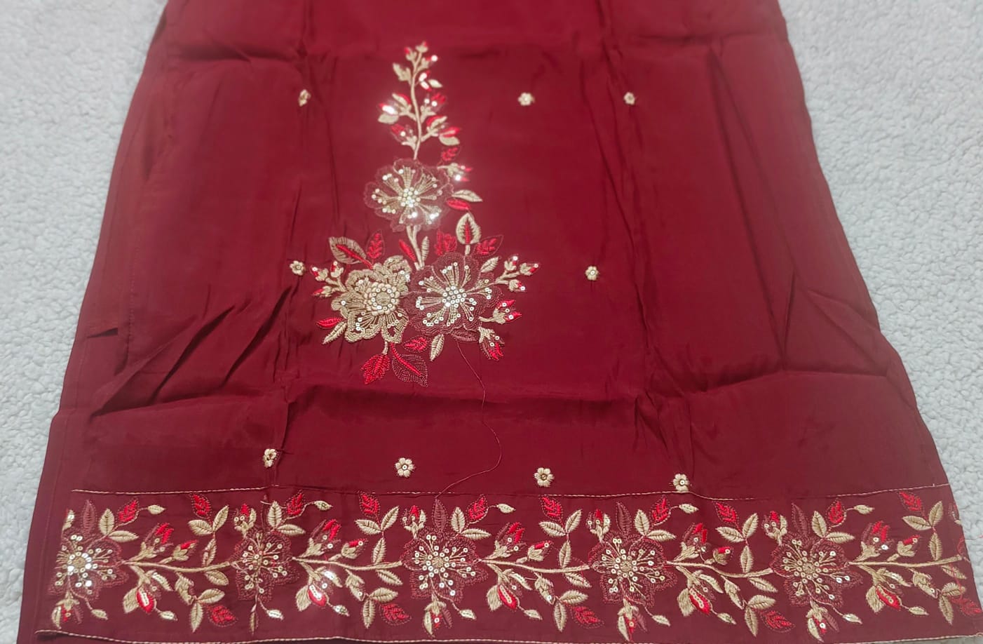 Digital Thread Full Work: The entire top is adorned with vibrant and detailed Digital Thread Work. This technique ensures sharp definition and high fidelity in the design, giving the look of dense, luxurious embroidery with a lightweight feel.