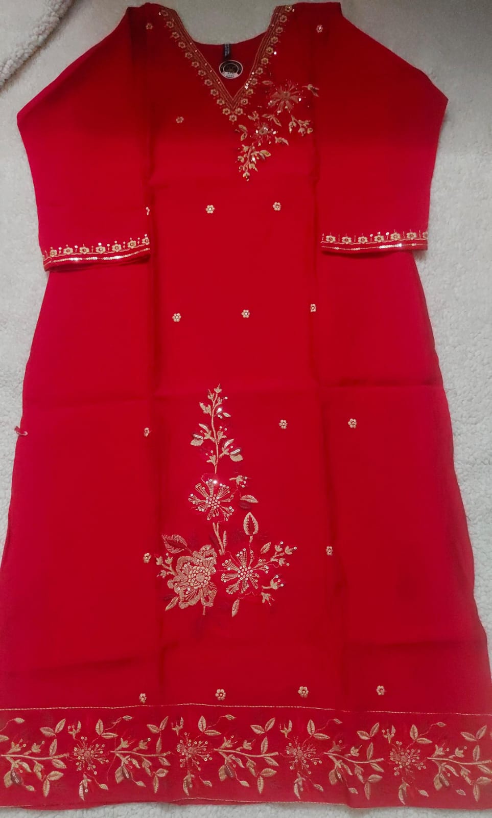 Paired with a sleek and modern Straight Pant (or trousers). This tailored cut ensures a comfortable fit and a refined silhouette that perfectly balances the heavy detailing on the top and dupatta.