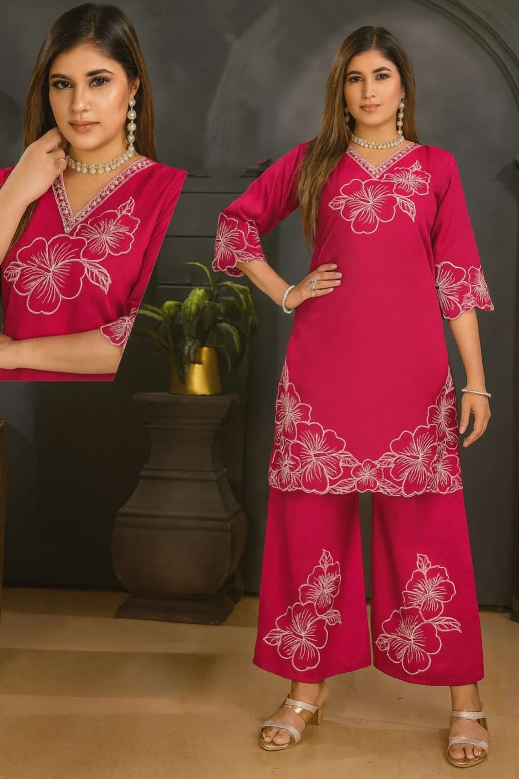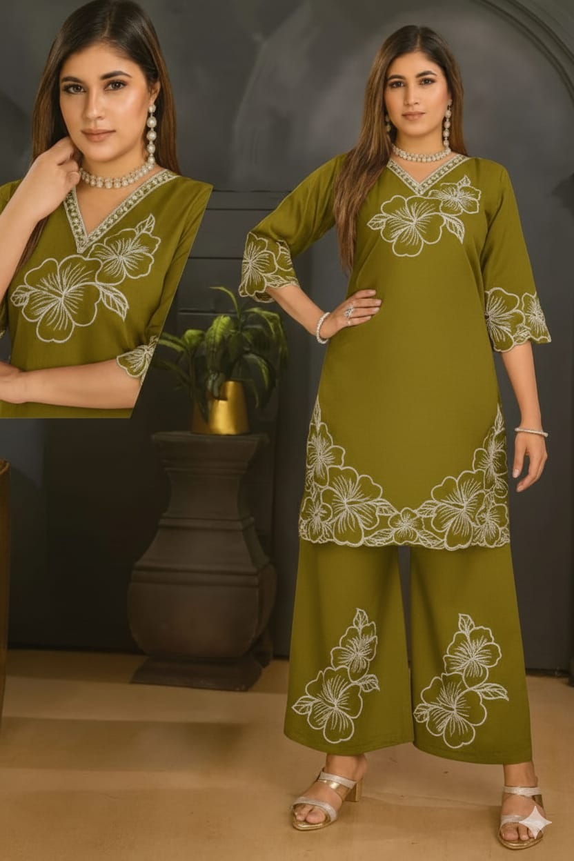 This cord set is a celebration of color and detail. It is Beautifully Designed for the confident individual who loves traditional artistry mixed with contemporary, effortless style. The vibrant hues make it an excellent choice for Mehendi ceremonies, festivals, or culturally rich parties.